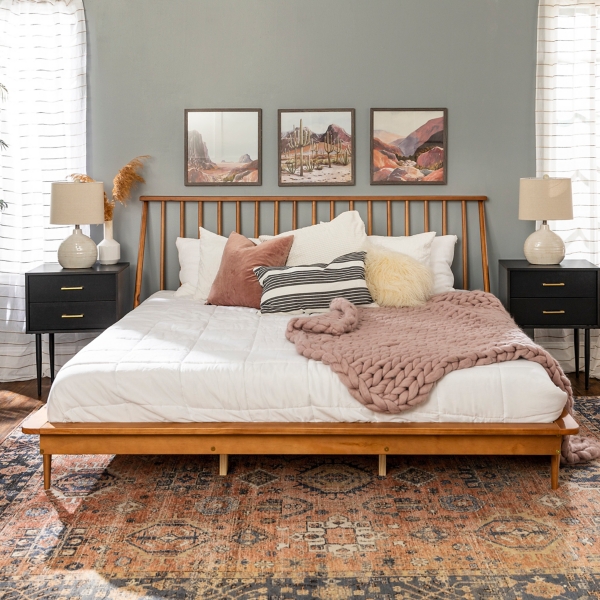 You probably wish you were there right now. Is a chic way to upgrade your bedroom. The tapered legs inspire dreams of nostalgic dances and nights spent at the soda shop. Caramel mid century modern bed frame, $599. Drift away in your boho bedroom with this mid century modern bedframe.